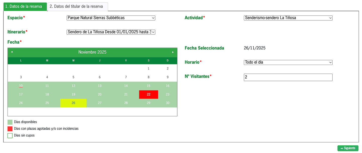 Trage die Anzahl der Wanderer unter „Nº Visitantes“ ein.