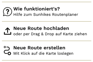 Mit dem Sunhikes 3D-Planer kannst du bestehende GPX-Dateien hochladen und bearbeiten. Dazu kannst du entweder auf den Button »Neue Route hochladen« klicken und die GPX-Datei auf deinem eigenen Gerät suchen oder die GPX-Datei per Drag & Drop auf den Sunhikes 3D-Planer ziehen.