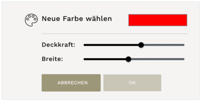 Im Dialogfeld »Farbe ändern« kannst du die Farbe, die Deckkraft sowie die Breite der ausgewählten Route auf der Karte anpassen.