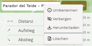 Durch einen Rechtsklick auf die ausgewählte Registerkarte stehen die Optionen »Umbenennen«, »Ausblenden«, »Herunterladen« oder »Löschen« der Route zur Verfügung.