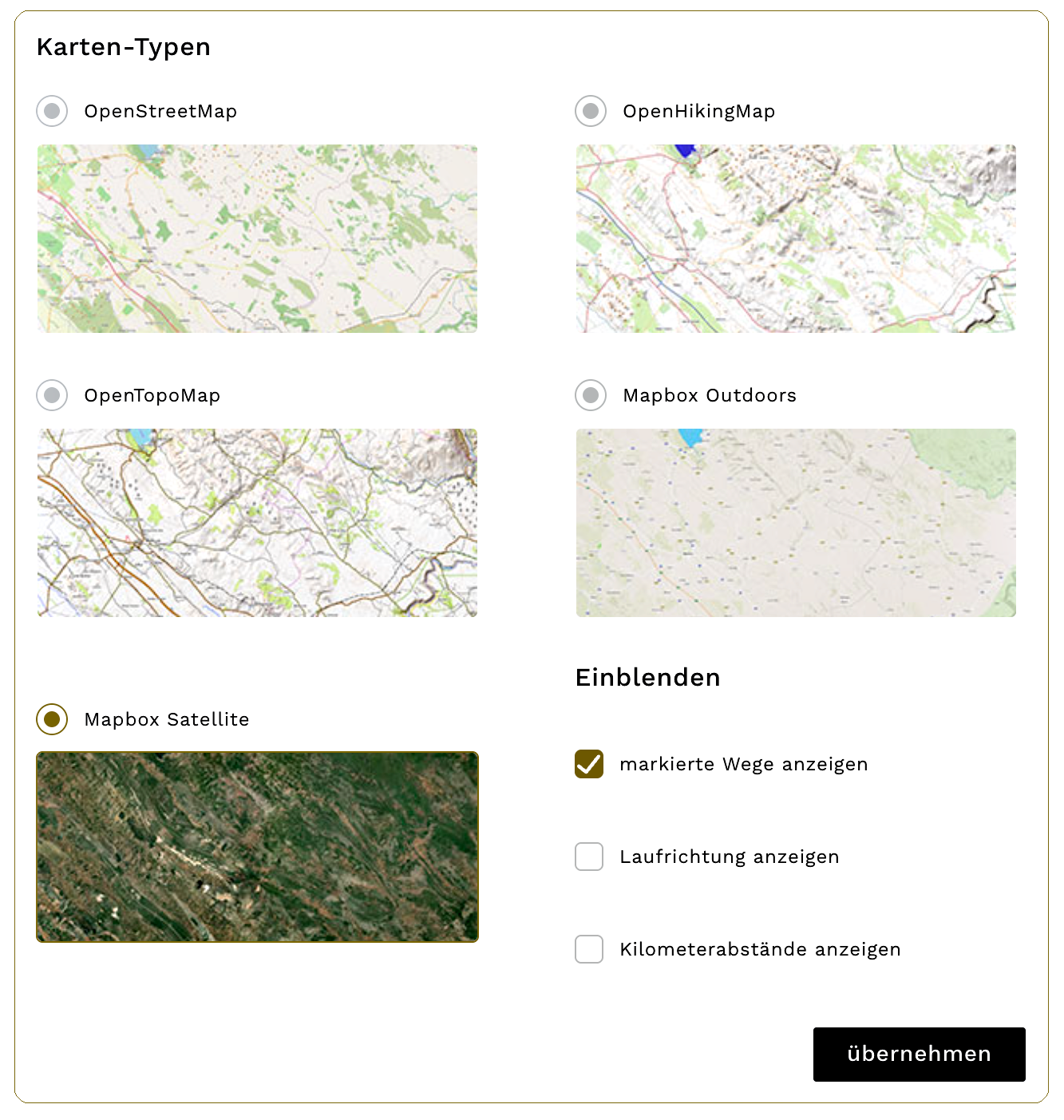 Liegt ein geplanter oder importierter GPS-Track im Planer, lassen sich zusätzlich Laufrichtung und Kilometerabstände der Route anzeigen.